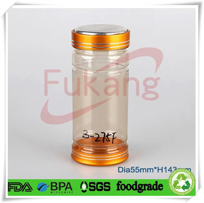 B-275F 275毫升PET塑料片淡黃色圓形藥瓶,帶金屬螺釘頂蓋和鋁底蓋的PET藥罐圖片