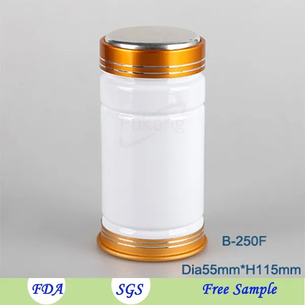 250ml PET塑料片醫藥白色圓形瓶,帶金屬螺絲頂蓋和鋁底蓋的PET醫藥瓶