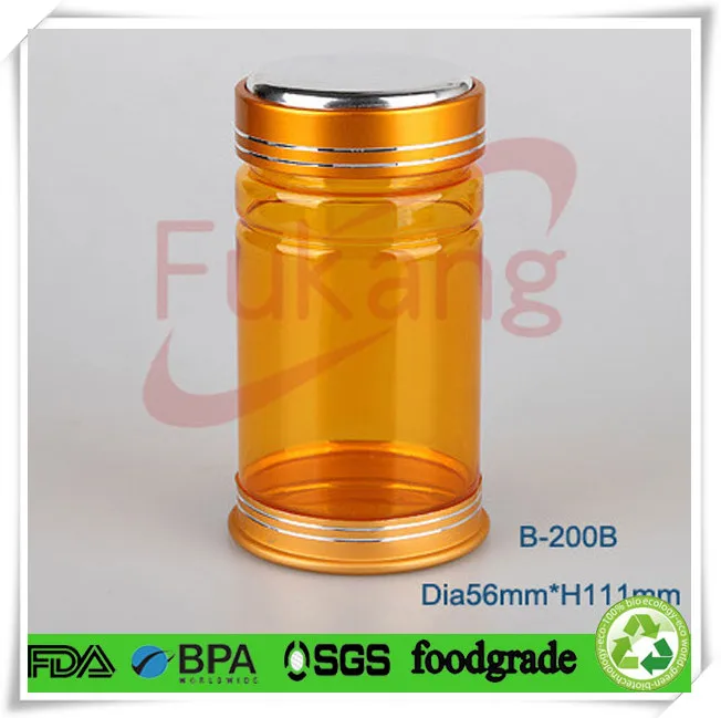 B-200B 200ml PET塑料片藥用黃色圓形瓶,PET